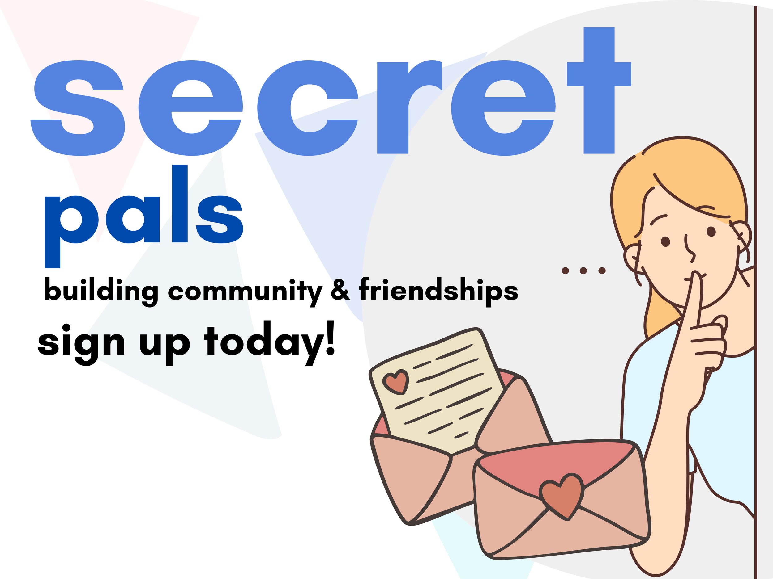 Starting February 1, we’re launching Secret Pals, a fun way to build connection across kids, youth, and big church. Sign up in January, get matched with a secret pal, and spend the next few months sharing notes, drawings, and small surprises through our secret mail board.